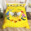 Bee Duvet Cover Twin Honeybee Bedding Set Farmhouse Wild Animal Comforter Cover Boho White Daisy Flowers Floral Wreath Bed Set