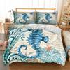 3D Seahorse Duvet Sets Free Shipping Marine Mediterranean Style Bedding Set Teal Ocean Comforter Cover Kid Double Bed Set