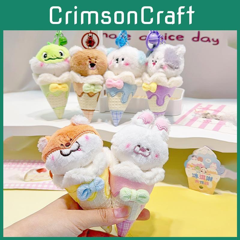 Colorful Ice Animal Cream Plush Keychain Featuring Adorable Fox Rabbit Otter Cat Bear And