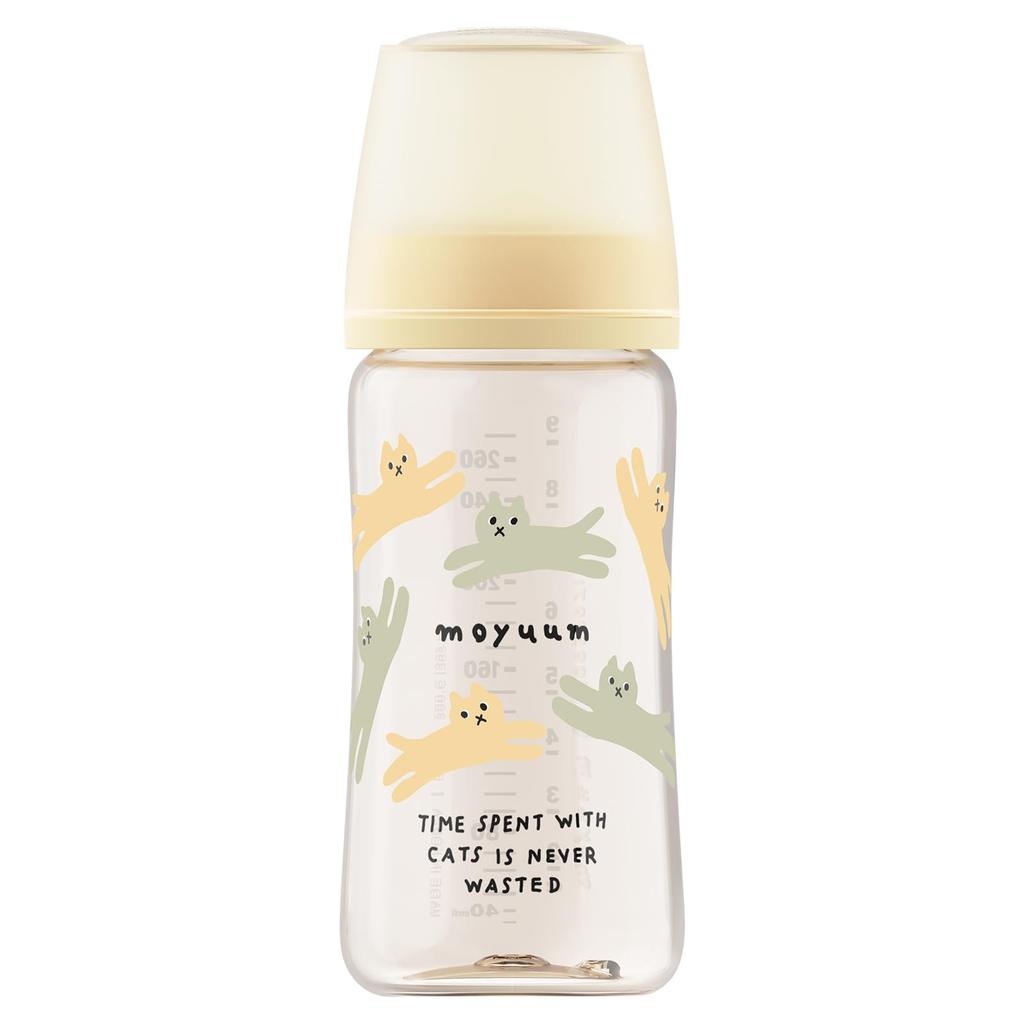 MOYUUM Plastic Baby Bottle, Cat's Yellow, 270ml (PPSU), for Ages 3 Months and Up, Wide Neck, Round Hole, 2025 Model