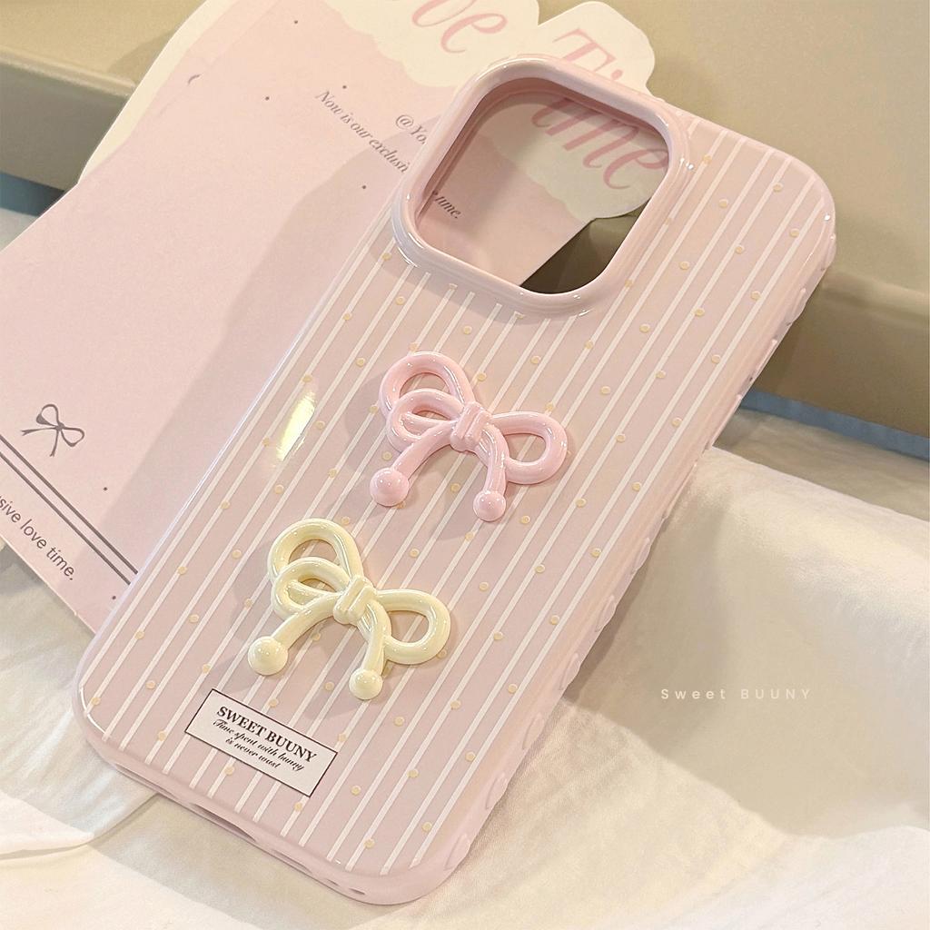 Korean Three-dimensional Pink Bow for Apple 17 Mobile Phone Case for IPhone 16 Silicone 15 Promax Anti-fall 13
