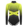 Girls Color Block Ballet Leotard Shiny Faux Diamonds Rhinestone Long Sleeve Gymnastics Ballerina Jumpsuit