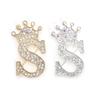 Fashion Crown 26 Initial Letters A To Z Rhinestone Brooches For Women Coat Dress Lapel Collar Pin Jewelry Accessries