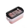 1pc 1400ml Double-layer Lunch Box Portable Compartment Food Box Microwave Lunch Box With Fork Chopsticks And Spoon Picnic Fresh