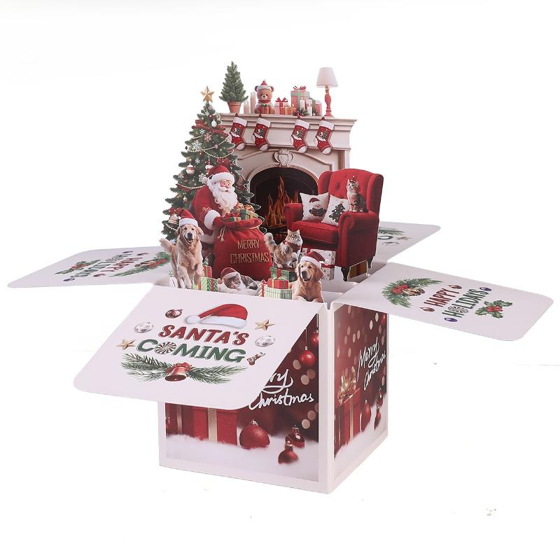 3D Christmas Greeting Card Folding Santa Claus Pop Up Invitation Card Year Cards Navidad Blessing Gift Best Wishes Card