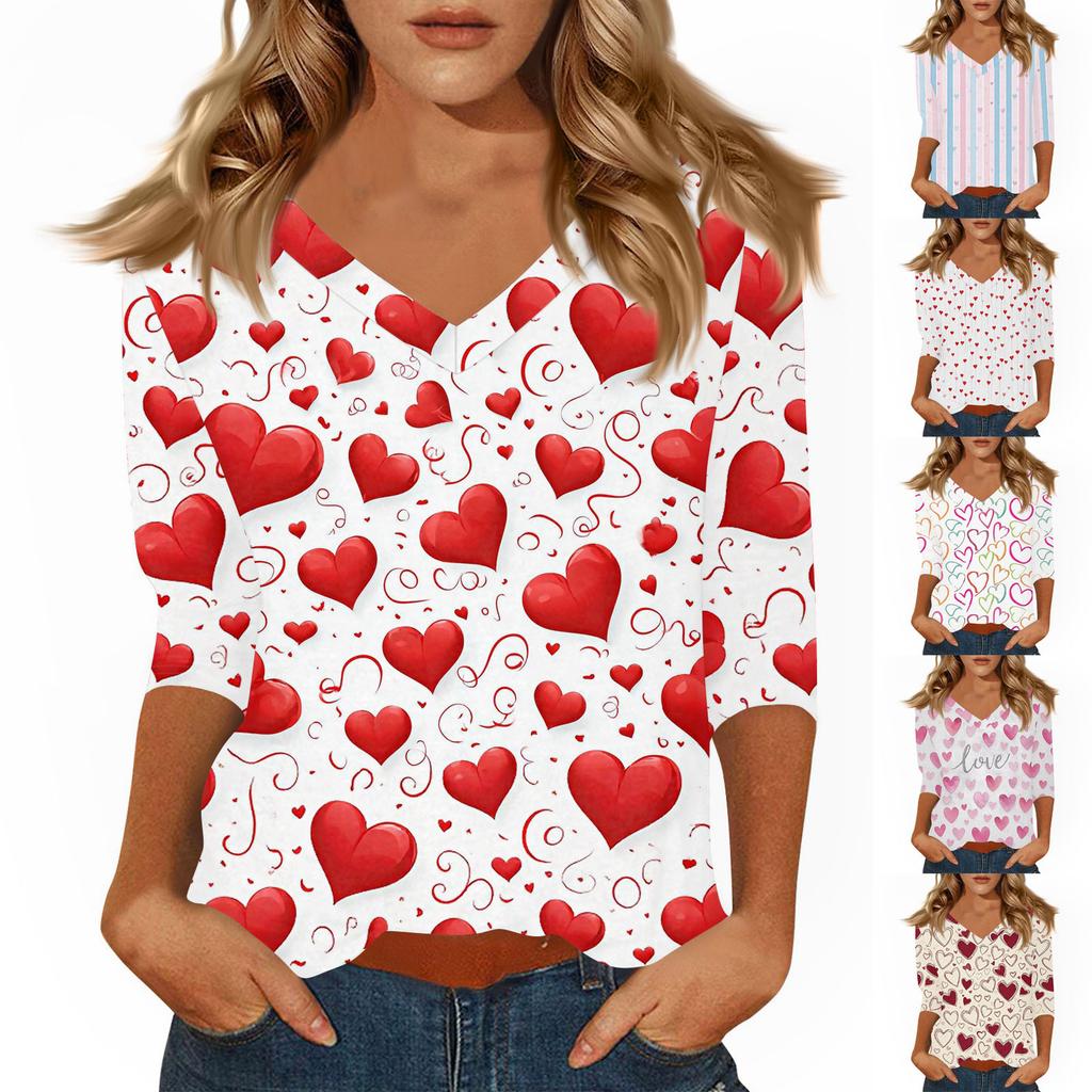 Women's T Shirt Print 3/4 Sleeve Daily Weekend Fashion Basic V- Neck Regular Top — buy online with free worldwide shipping!