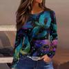 Women's Fashionable Casual Neck Long Sleeve Hem Split Carnival Print T-Shirt Top