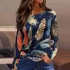 Women's Fashionable Casual Neck Long Sleeve Hem Split Carnival Print T-Shirt Top — buy online with free worldwide shipping!