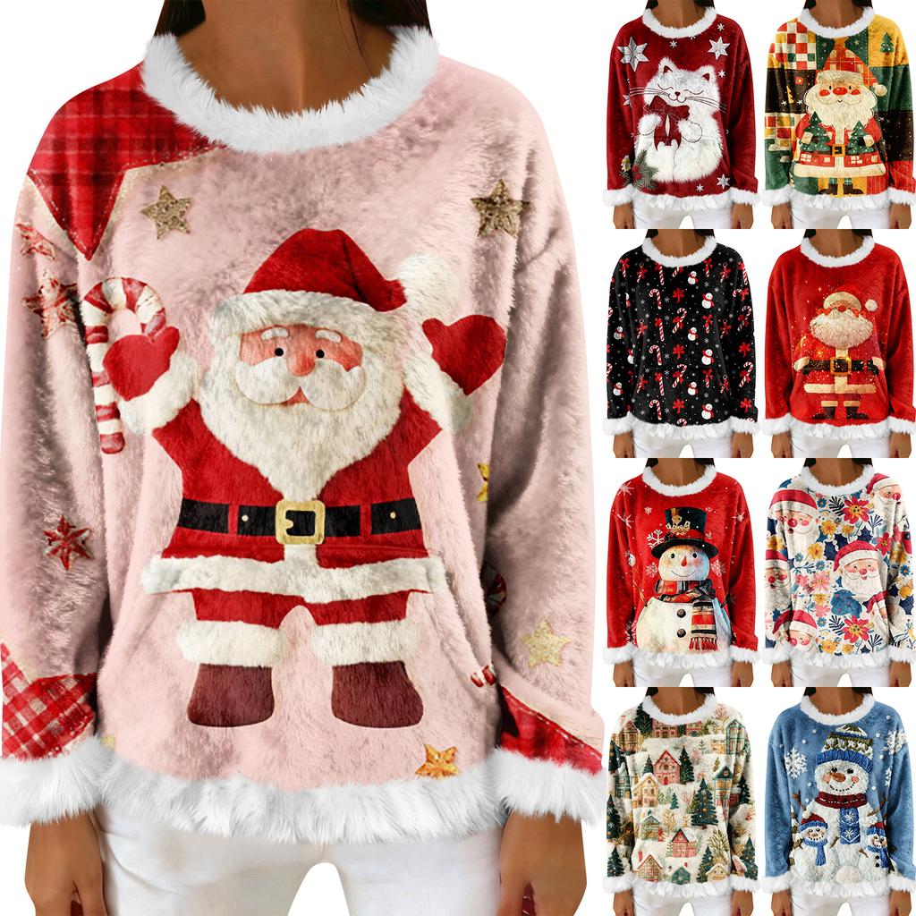 Women's Casual Fleece Sweatshirt Long-Sleeve Round Neck Casual Comfortable Loose-Fit Lightweight Women's Flannel Sweatshirt — buy online with free worldwide shipping!