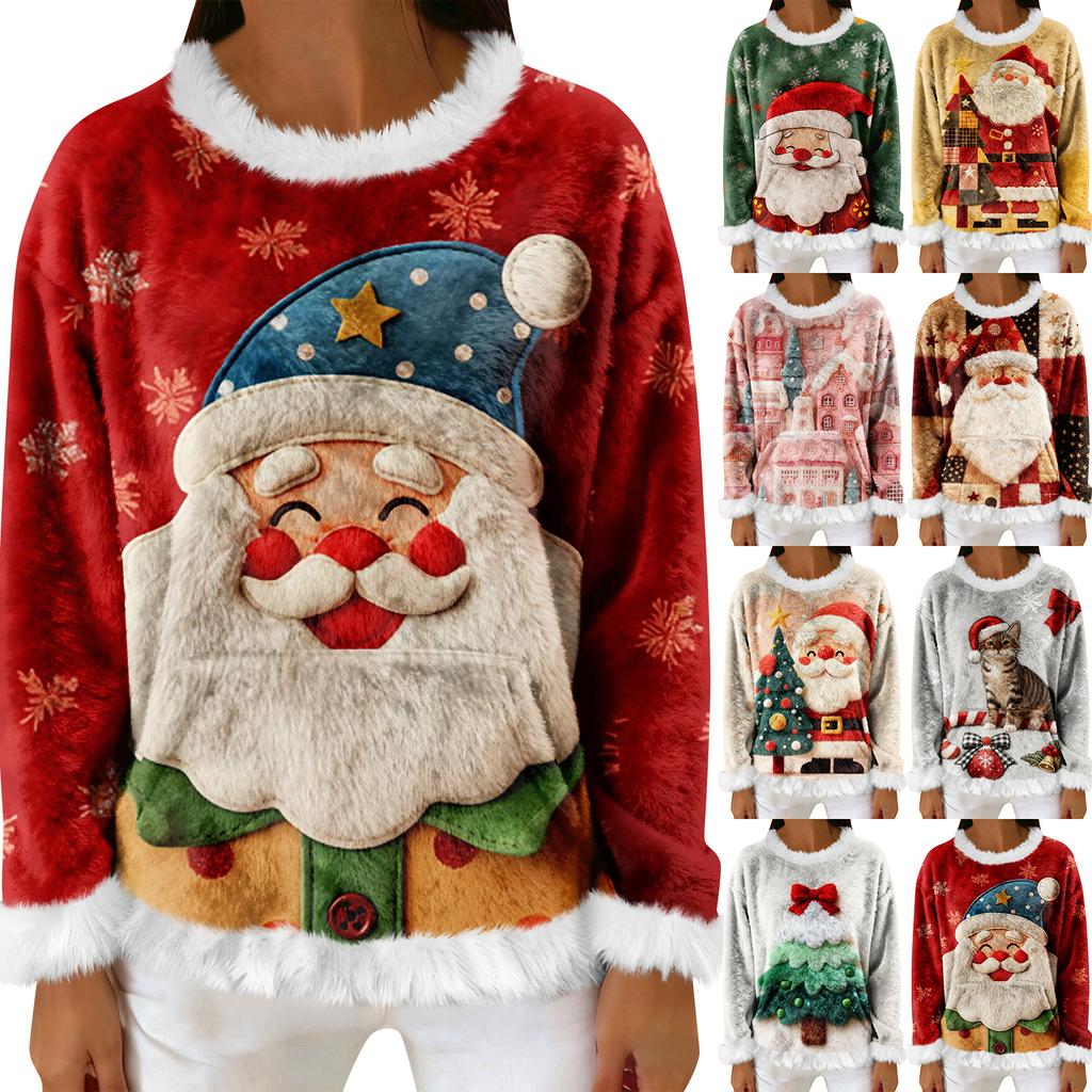 Women's Casual Fleece Sweatshirt Long-Sleeve Round Neck Casual Comfortable Loose-Fit Lightweight Women's Flannel Sweatshirt — buy online with free worldwide shipping!