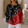 Women's Fashionable Casual Christmas Print V-Neck Long-Sleeved Button-Down Blouse