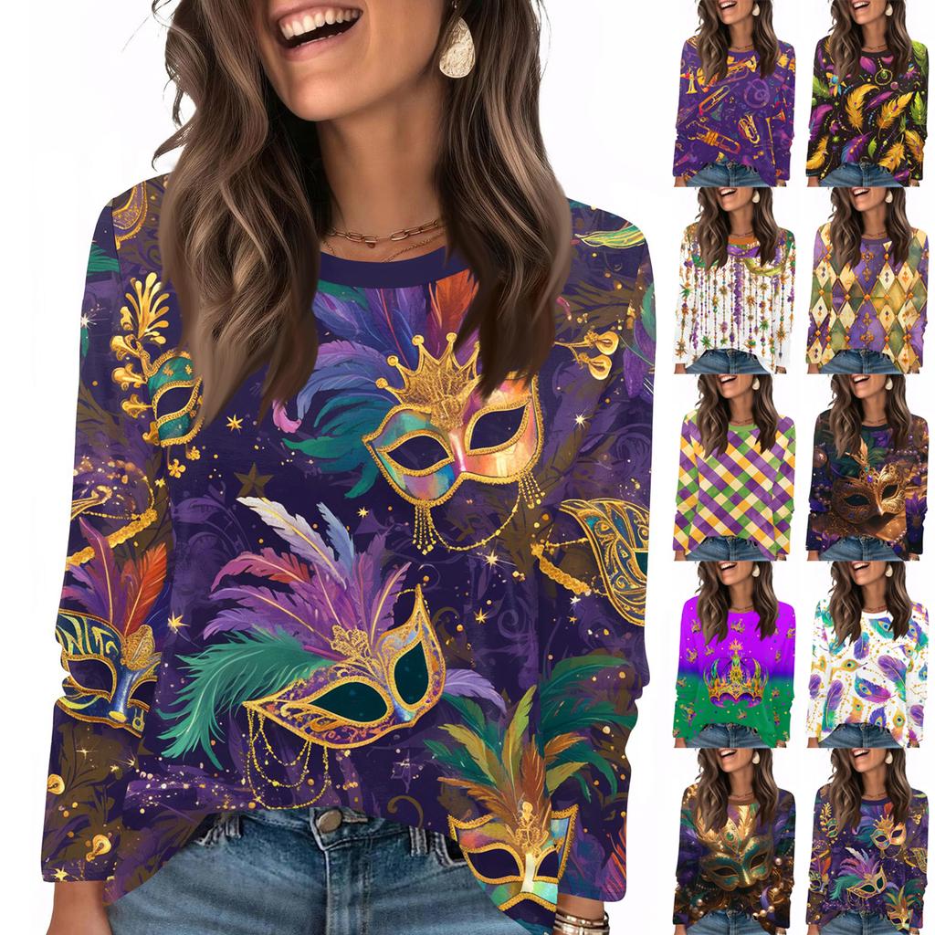 Long Sleeve Shirts For Women Cute Print Graphic Tees Blouses Casual Plus Size Basic Tops Pullover