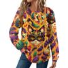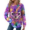 Women's Fashion Loose Long Sleeve Carnival Print Round Neck Casual Top