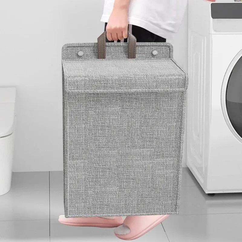 Foldable Adhesive Laundry Basket Hamper, Multifunctional Punch Free Wall Hanging Washing Clothes Mesh Hook Organizer — buy online with free worldwide shipping!