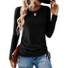 Women's Fashion Round Neck Solid Color Long Sleeve Side Drawstring Loose Casual Hoodie T-shirt Top