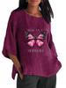 Women Fashion O Neck Print Shirt Spring&summer 3/4 Long Sleeved Top Ladies Cotton Linen Blouse