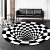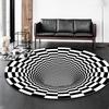 Disney Black White Plaid 3D Visual Carpet Circular Vortex Living Room Coffee Table Sofa Floor Mat Bedroom Home Decor Rug