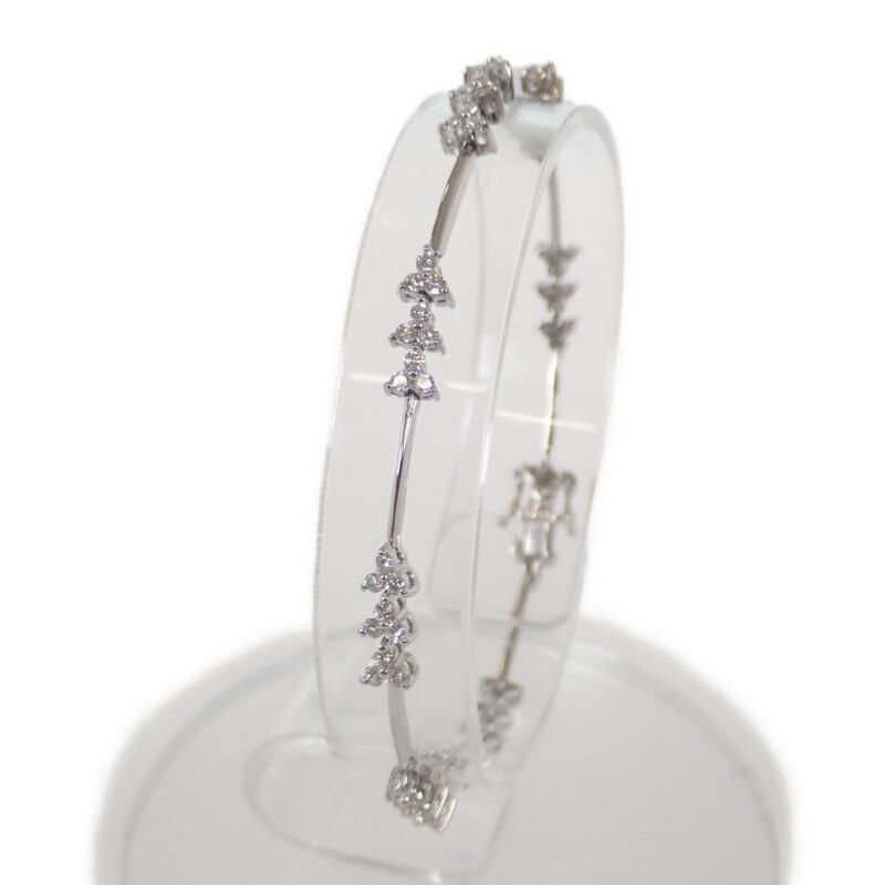 Production features:This bracelet is made of 18K white gold and delicately set with diamonds. It is a simple and sophisticated design with beautiful clear sparkle and flowing lines. It is a perfect piece of jewelry for everyday use as well as special occasions, as it goes with any outfit.