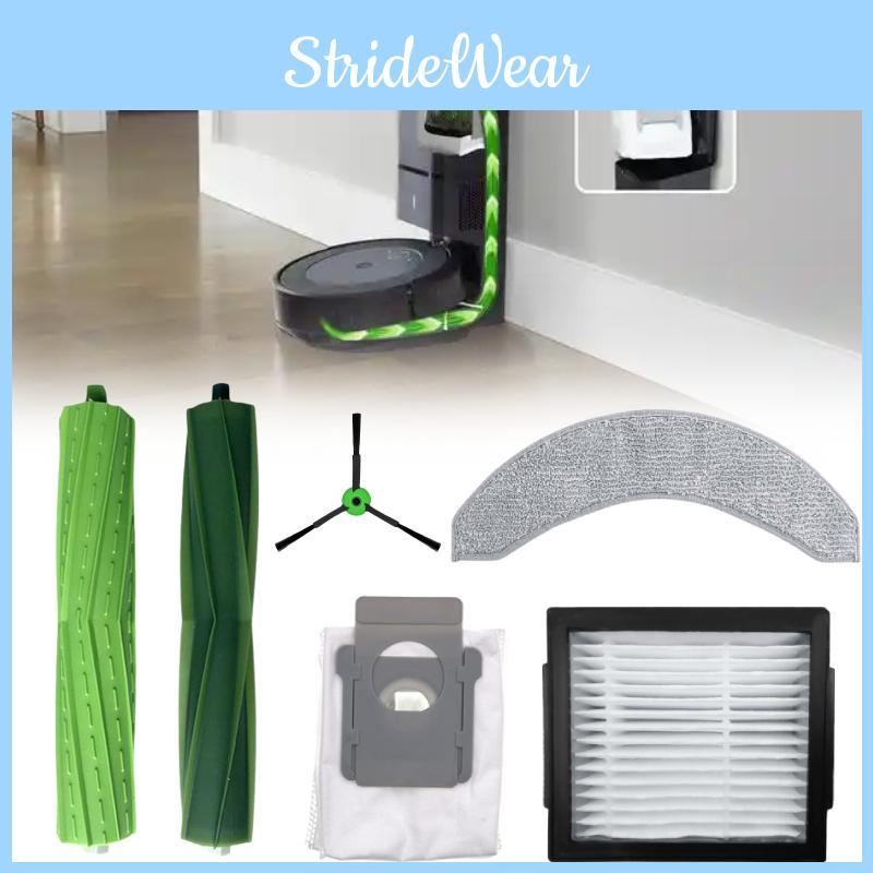 This Roomba Combo accessory set includes a main brush, white and black side brushes, a filter, a cleaning cloth, and dust bags, supporting efficient dust removal. Made of durable plastic materials, Ideal for cleaning areas up to 150 square meters in home environments, these parts optimize robot performance. Regular maintenance involves wiping with a damp cloth to ensure optimal operation.