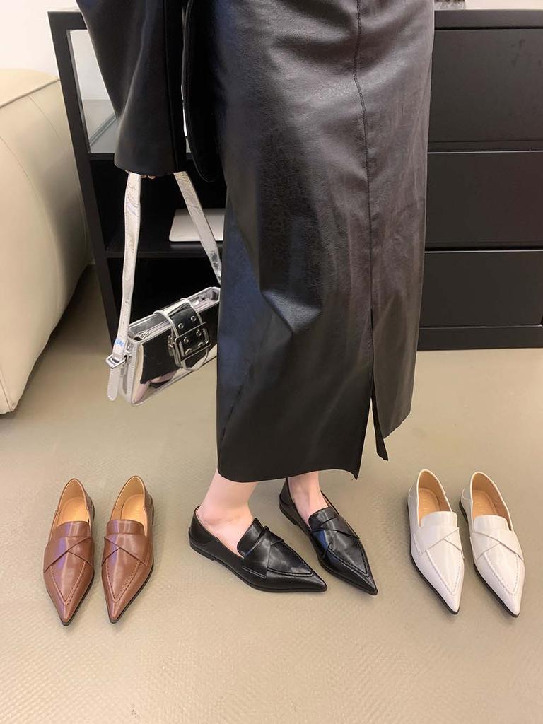 Fashion Fashion Women Loafers 2024 New Arrivals Autumn/Spring Dress Shoes Pointed Toe Black White Brown Ladies Mary Janes Size 35-39