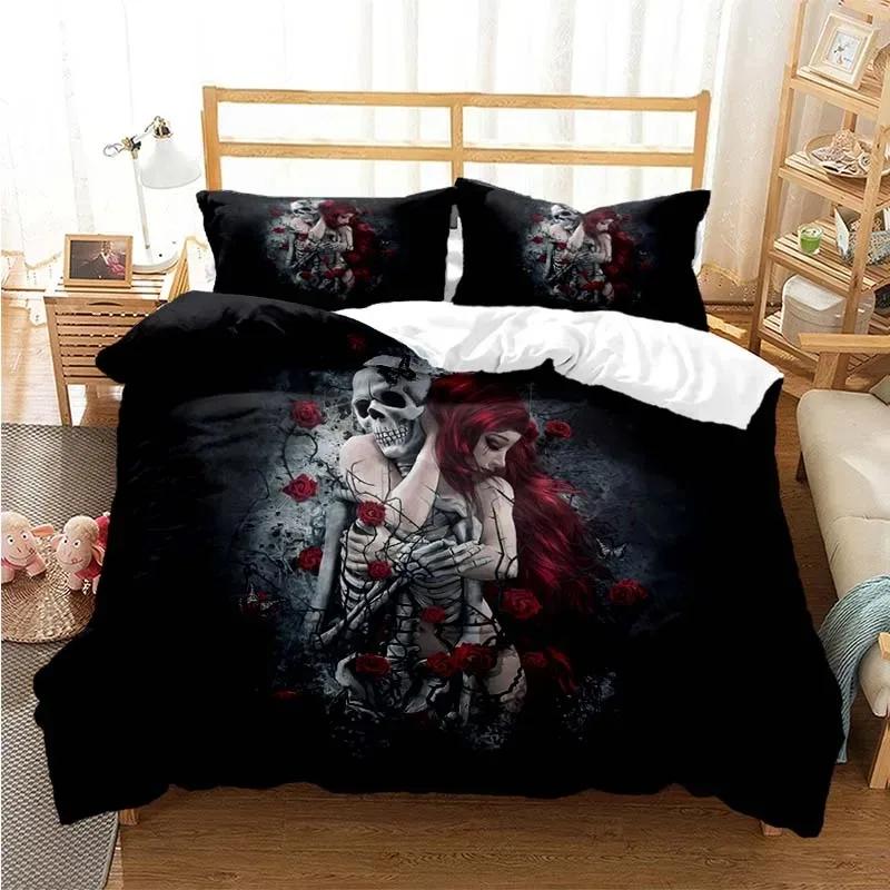 Sugar Skull Duvet Cover Set Queen Size Flowers Skeleton Bed Linen Double Bedding Set With Pillowcase King Size Skull Quilt Cover