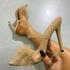 Fashion Liyke New Design Pink Fluffy Feather High Heels Slippers Female Fashion Peep Toe Summer Sandals Women Mules Slides Pumps Shoes