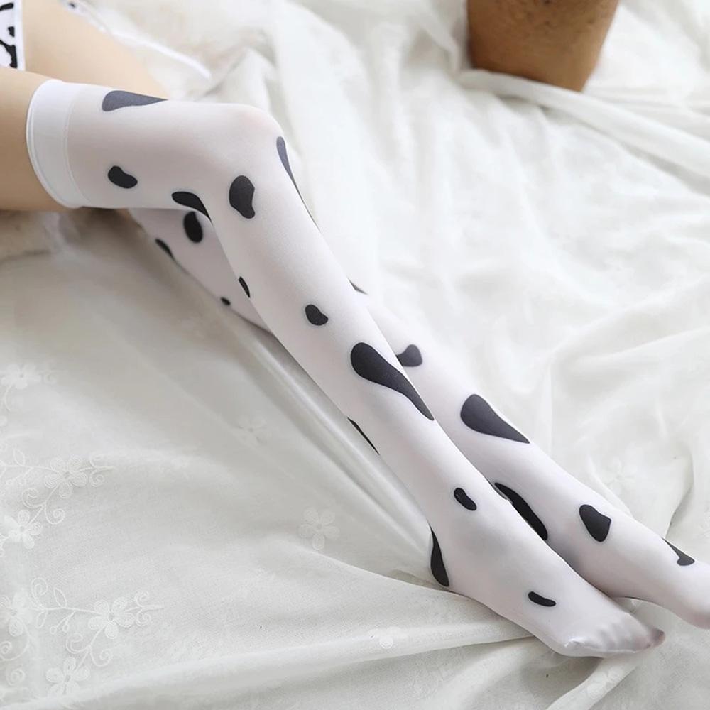 Women Silk Socks Cow Printed Pantyhose Thigh High Stockings Cosplay Stockings Cow Spots Printed