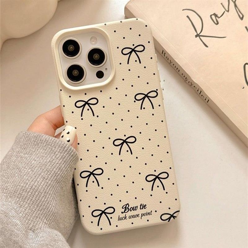Sweet Bow for IPhone16promax for Apple 15 Leather Texture Large Hole Phone Case 14/13 Anti-fall 12