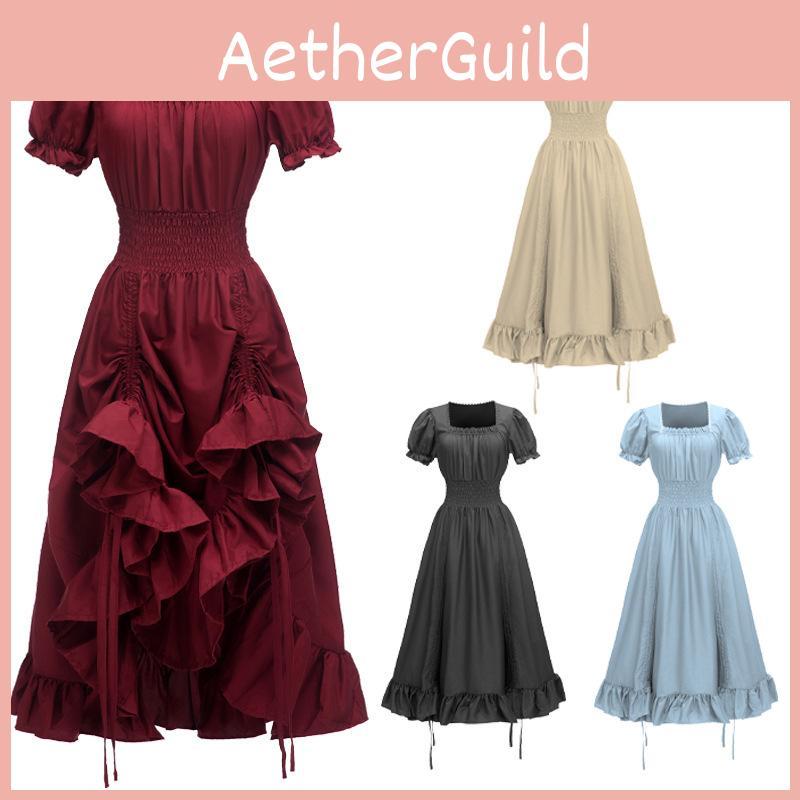 Vintage Renaissance Square Neck Short Sleeve Dress Medieval Pastoral Cosplay Dress
