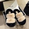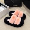New Color Matching Thick-soled Fluffy Slippers Women's Casual Parallel Bars Fluffy Shoes Fashion Home Wear Cotton Slippers Women