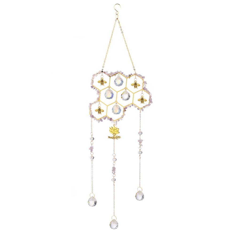 Natural Beehive Crystal Sun Catcher Hanging Wind Chimes Pendant Bedroom Balcony Patio