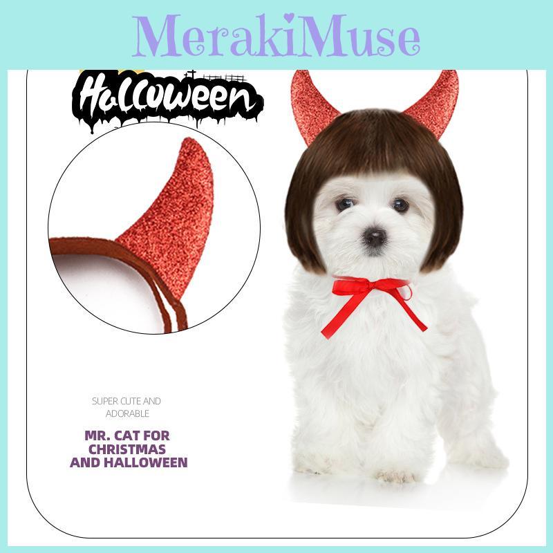 Stylish Dog And Cat Costume Set Featuring Horned Headband And Adorable Wig