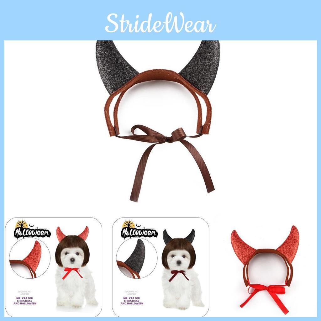 Chic Black And Red Horned Headband With Bowtie Wig Set For Dogs And Cats