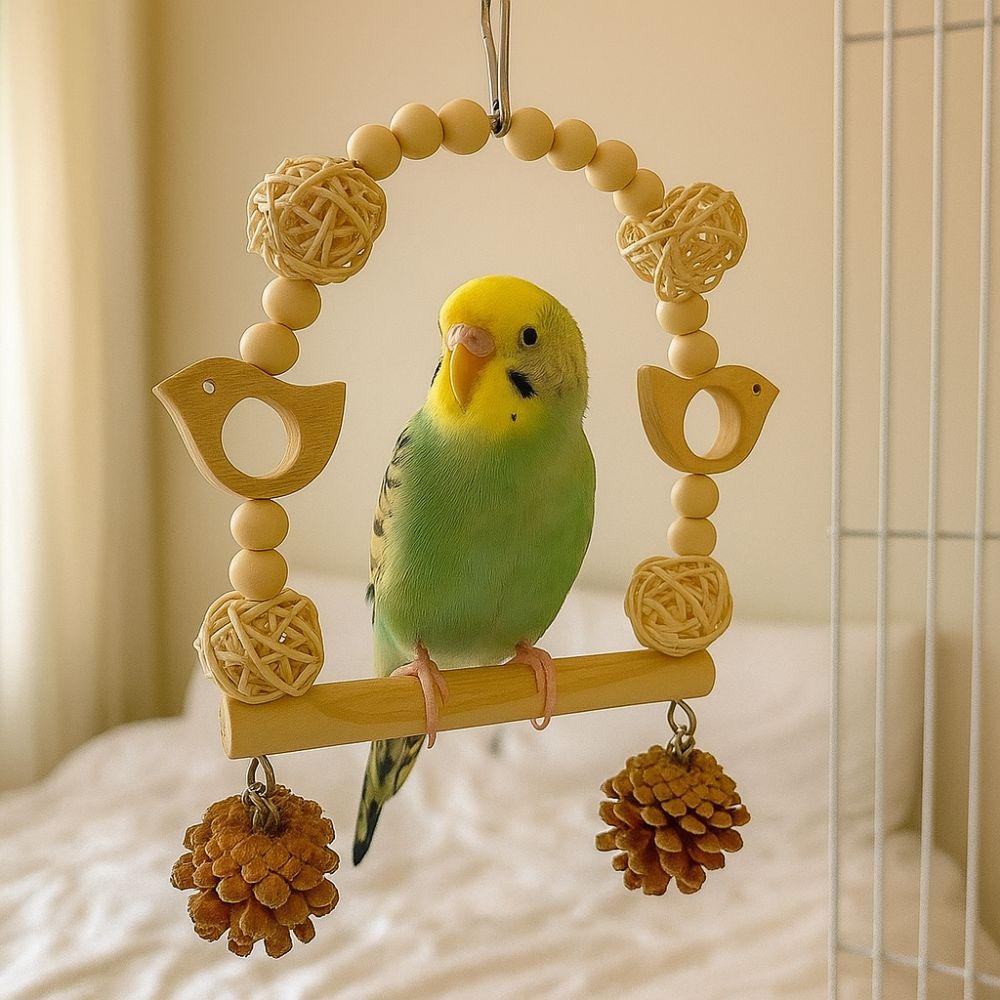 Hang Bird Swing Toy Wooden Bird Foraging Swing Funny Parrot Cage Toy Entertainment