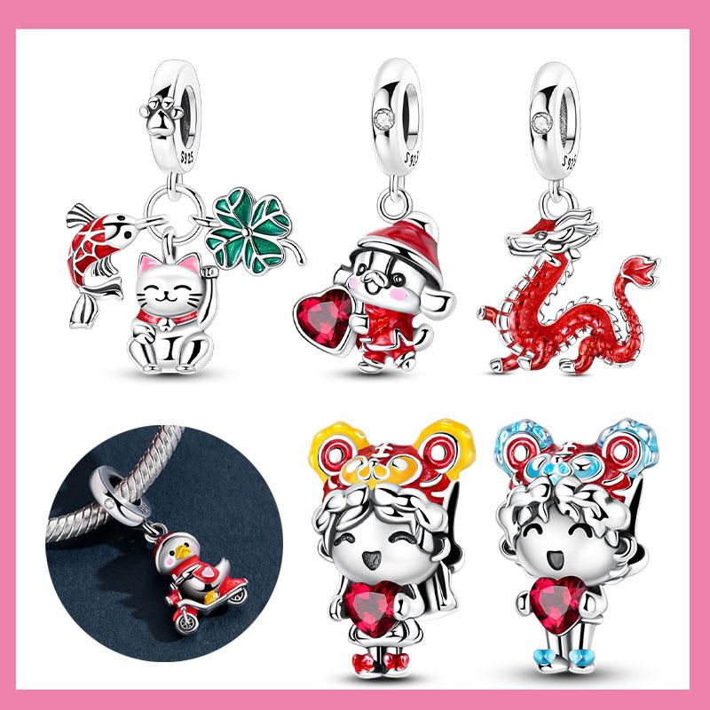 Copper Charms New Year Series Red Boy Girl Lucky Cat Koi Beads Pendant Fit Original Bracelet Diy Jewelry For Women — buy online with free worldwide shipping!