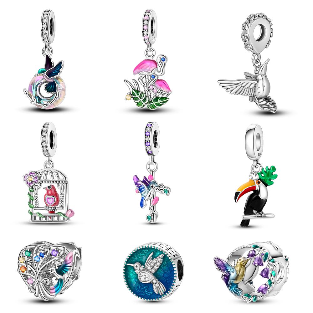 Copper Charms Birds Hummingbird Beads Fit Original Bracelet Pendants Diy Jewelry Gift For Women