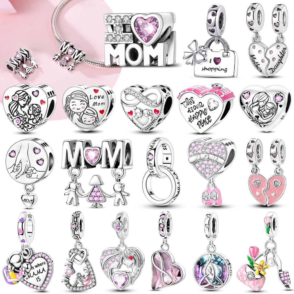 Copper Bead Mom Love Happy Family Dangle Mother'S Gift Charm Fit Original Bangle Bracelet Necklace Diy Jewelry