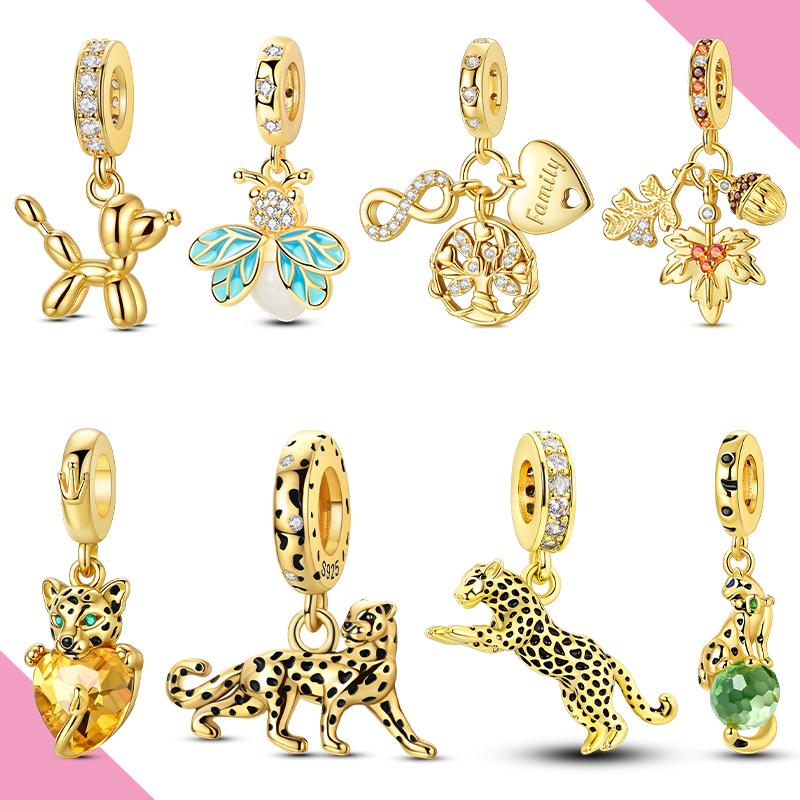 New Gold Series Copper Charms Sparking Gold Plated Pendant Bead Leopard Dog Fit Original Bracelet Diy Jewelry