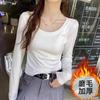Small Short Sweet and Spicy Style U-neck Slim and Thin Long-sleeved T-shirt Women's Autumn Solid Color Versatile Bottoming Top