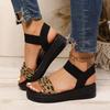 Women's Wide Width Platform Sandals, Elastic Slip-On Wedge Heels, Leopard Print Wholesale Slides for Women — buy online with free worldwide shipping!