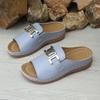 Women's Wide Width Solid Color Slides, Round Toe Chain Detail Mules, European Casual Sandals for Women