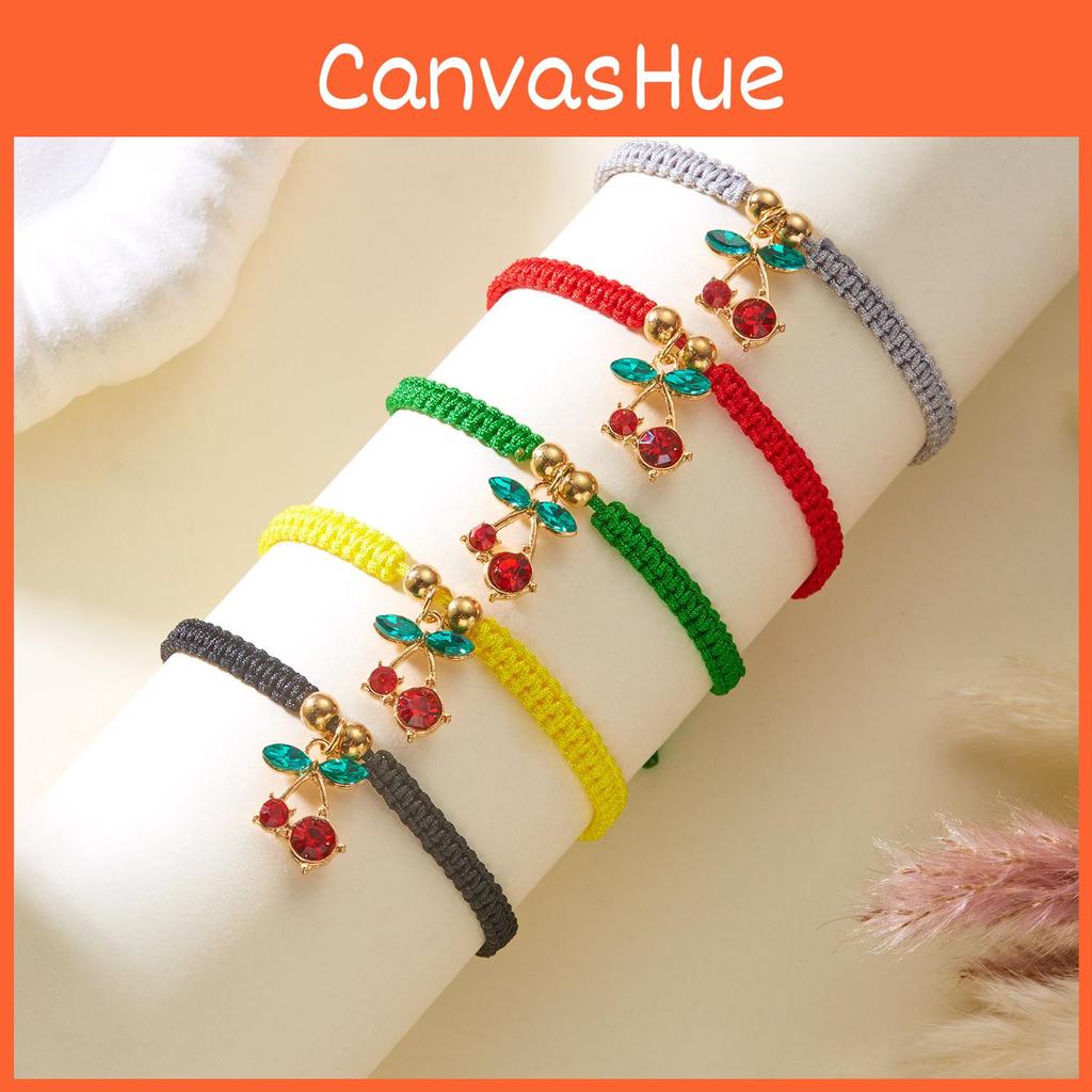 womens woven bracelets, fruit-themed jewelry, end of year wrist accessories, travel gift bracelets, handcrafted womens jewelry, cherry motif accessories, fashionable woven wristbands