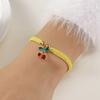 This women's artistic bracelet features a handwoven design with fruit-themed elements, including cherries, crafted from durable woven cord. it is accented with electroplated details for a sleek finish, making it suitable for celebrations and travel souvenirs. Ideal for gifting during travel or special occasions, this bracelet supports easy wear and removal. To maintain its vibrant appearance, wipe clean with a damp cloth. Its unique fruit motif and contemporary style make it a versatile accessory for fashionable women.