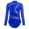 Girls Sheer Mesh Long Sleeve Leotard Cutout Back Sparkly Rhinestone Gymnastics Figure Skating Costume — buy online with free worldwide shipping!