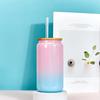 1pc 16oz Glass Tumbler Glitter Glass Jar Shimmer Beer Mug Can Shaped Drinking Glass With Bamboo Lid And Reusable Straw DIY Gifts
