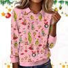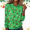 Women's Fashion Christmas Print Lapel Long Sleeve Casual Crewneck T-Shirt Top — buy online with free worldwide shipping!