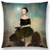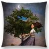 45x45cm Elegant Women Lovely Girl Shakespeare Fantasy Painting Moon Night Swan Dream Tree Cushion Cover Sofa Throw Pillow Cover