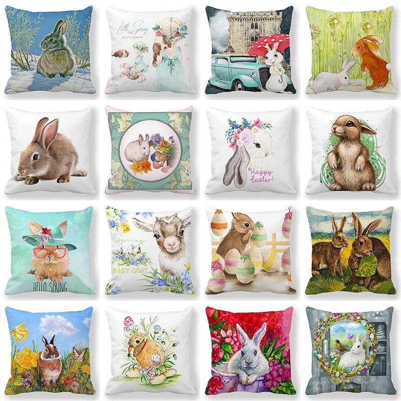 Easter Bunny Print Cushion Cover Spring Easter Egg Hare Pillowcase Home Decoration 40/45/50/60cm
