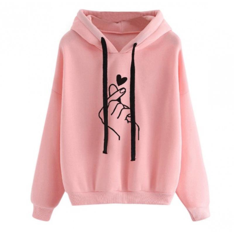 A Loose and Casual Printed Heart-shaped Hooded and Fleece Sweatshirt for Women — buy online with free worldwide shipping!