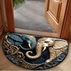 Elephant-Themed Semi-Circle Welcome Mat - Non-Slip Polyester Door Mat with Artistic Elephant Design - Decorative Home Accessory — buy online with free worldwide shipping!